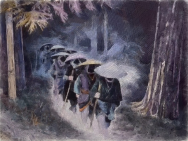 非業の死を遂げた者の霊ともいわれ、常に一列になって歩いているらしい。