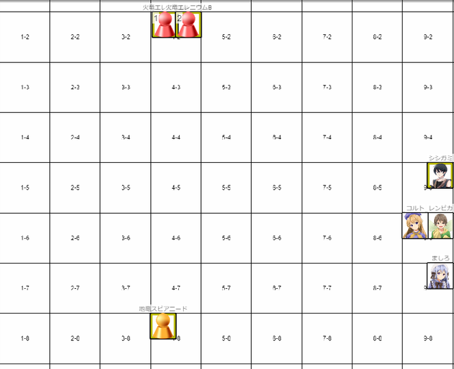 流石に避けられ……回避たっか(笑)避けました。こいつ風竜なんじゃね。さて、火竜が動きますね? 移動12、全力移動で4ます。まず1が6-4シシガミに対しウィルブレス放心。命中は15だ。