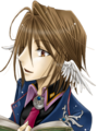 儀仗兵が再びラッパを吹くと、広間の奥の扉が開いて、何人かの男女が出てきた。金糸や宝石で飾られた派手な軍服を着た近衛兵が数名と、それに前後を守られながら歩いてくる王冠を被った青年。そして最後に、黒いローブを着た少女。