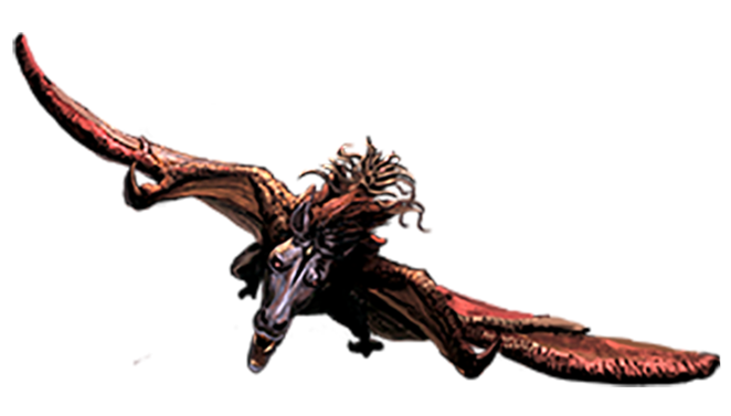 霜と硝石にまみれた巨大な翼、たてがみの生えた馬のような頭、そしてその図体は象ほどもあり、その体は鱗で覆われているーーそんな、鳥のようなフォルムの何かが、あなたたちの前に現れます