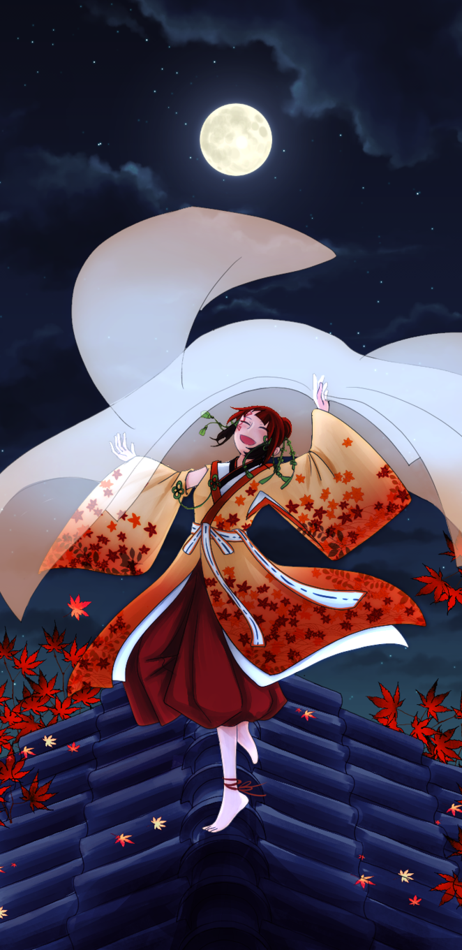月明りに照葉舞い