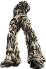 仁の斧が巨人の右腕を砕くと、その勢いに押されて横向きに倒れこみ、泥や土が舞い上がる。
