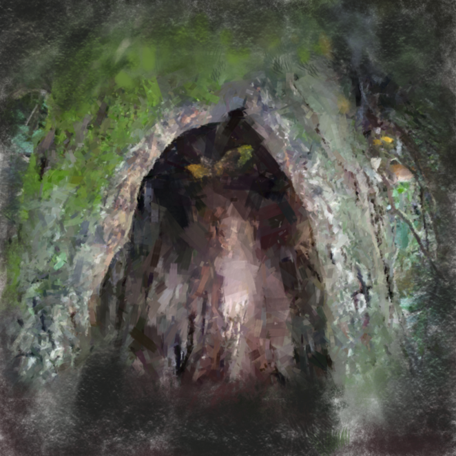 すると崖から少し歩いたところに、大きな木があって。根元に人が入れそうな大きなうろがあった。