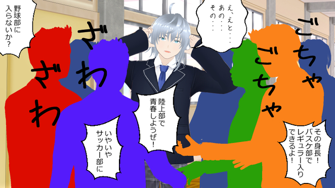 各運動部の先輩たちが部活の勧誘に来てるんだよ