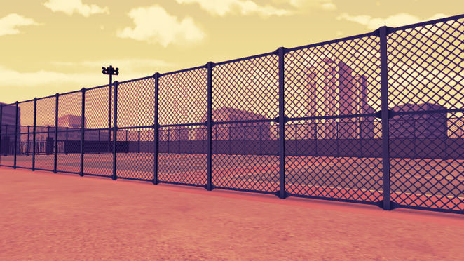 フェンス越しにテニスコートをぼんやりと眺める斎原彩華の後ろ姿…