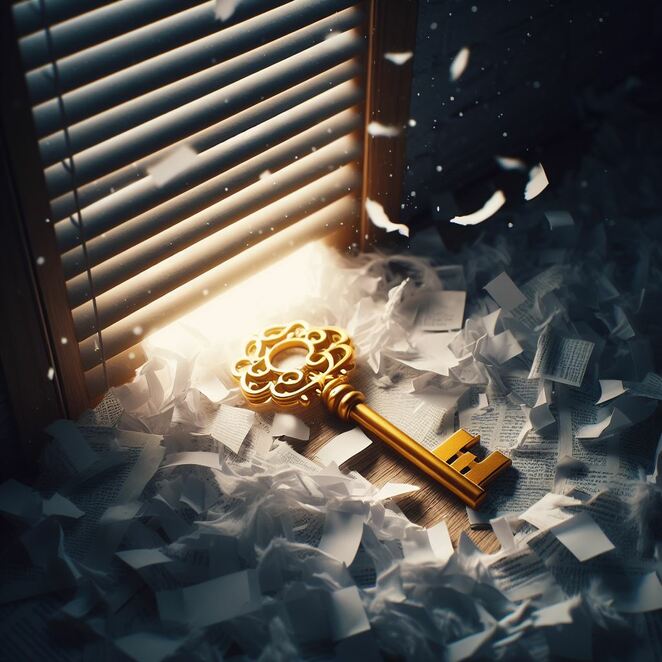 フェリックスはそう言いながら、受付の猫が手にしていたシュレッダーを静かに手に取ると、中身を床に撒いた。紙くずがバラバラと空中に舞い、その中から予期せぬものが現れる。