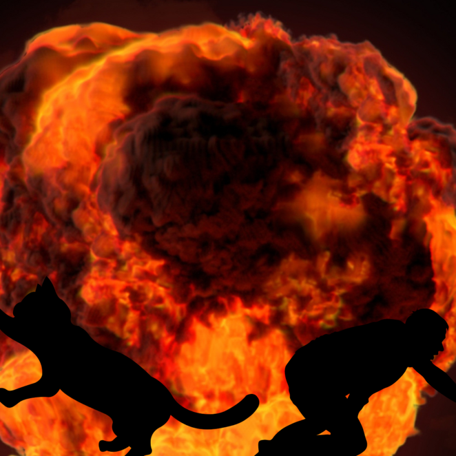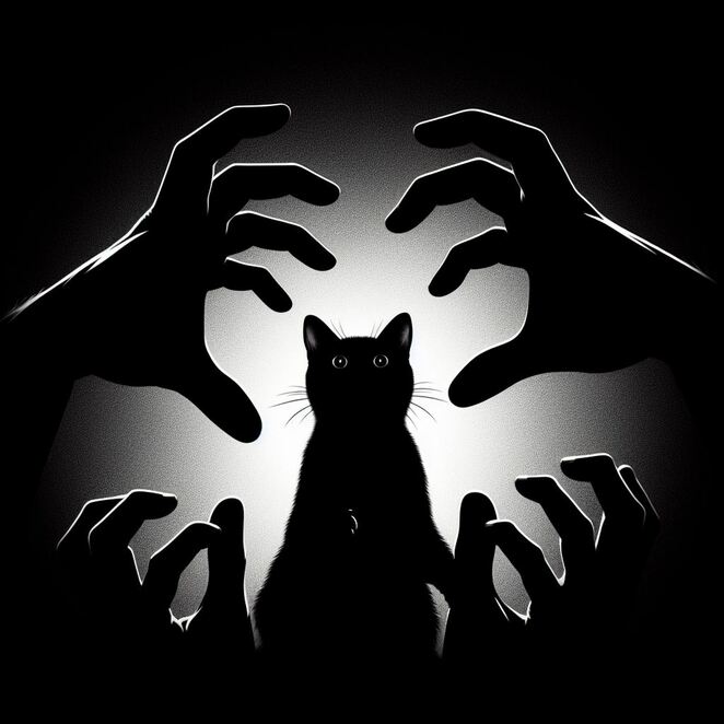 フェリックスは探し出される前に、近くの部屋へと身を隠した。しかし、そこも安全ではない。人間たちの足音が迫る中、フェリックスは息を切らしながら机の上に飛び乗った
