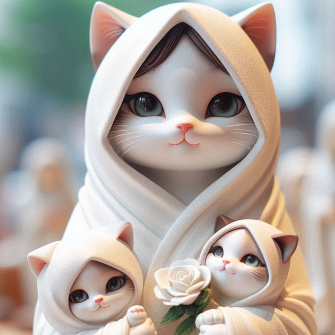 もう一枚の写真には、メス猫が2匹の子猫を