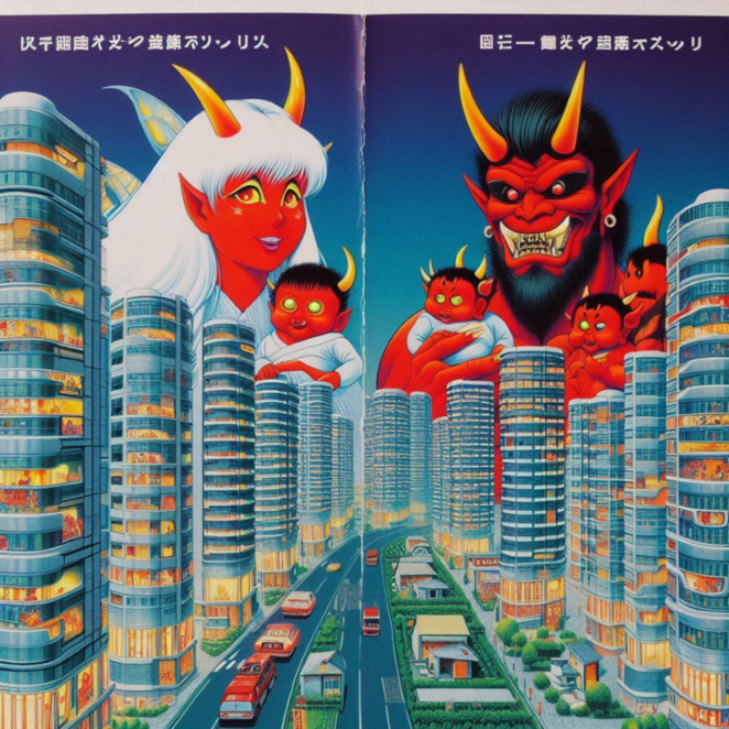 そこには近未来的な建物が並び、鬼たちが幸せそうに暮らしている様子が描かれていた。