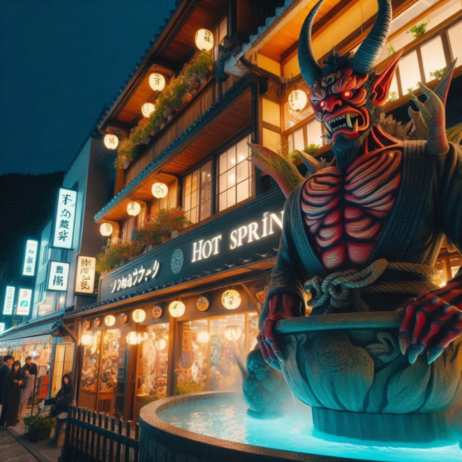 賑やかな通りには、鬼たちが楽しそうに