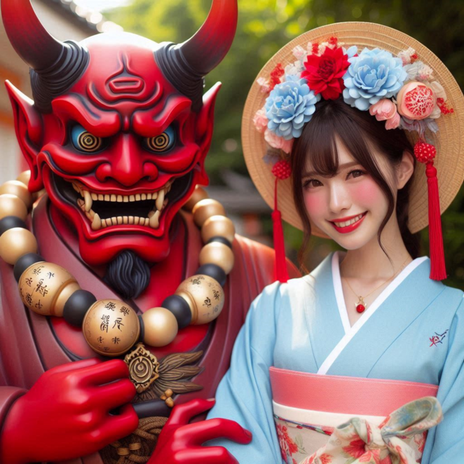 鬼と一緒に記念撮影!