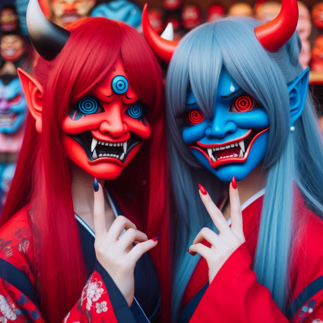 女性の鬼たちが観光客らしき