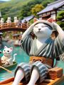 川沿いでひなたぼっこを決め込む魚屋のオス猫。