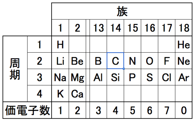 性質の似たものが縦に並ぶように工夫された表があるんだ。