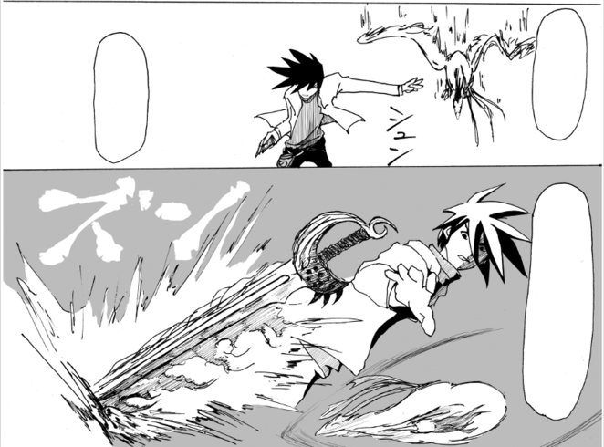 暴力と犯罪が支配する街、魔血堕に鮮烈デビューを果たした剣!しかし彼の前に立ちはだかったのは特殊能力を駆使する謎のMTGプレイヤー集団だった・・・!次回、バトルギャザリンガー剣第二話『超能力!?超次元ギャザリンガー襲来!!』の巻!!来週も・・・バッパラに剣つけて殴るぜ!!