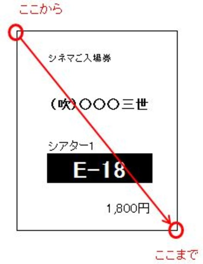 じゃあ藤子F式に説明するね。映画の半券の対角線上、左上から右下まで、一番早いのはどういう移動経路?